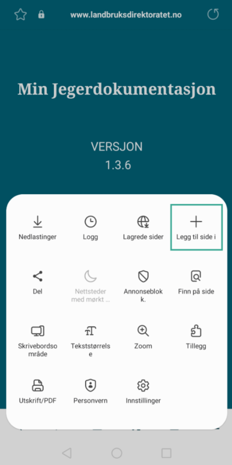 Gå til min jegerdokumentasjon i samsung internett. Du får da opp et banner øverst på siden med mulighet for å laste ned appen direkte. Om det ikke kommer som en mulighet kan du følge disse stegene.